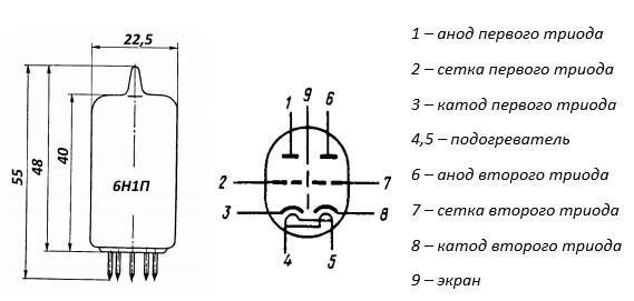 | Транслитерация | 6N1P-V Dual Triode, 3.301.006TU. |