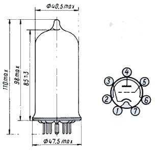 | Напряжение накала | 5,7 - 6,9 V |