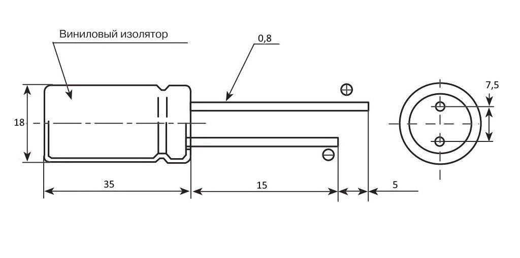 | Диаметр выводов | 0,8 mm |
