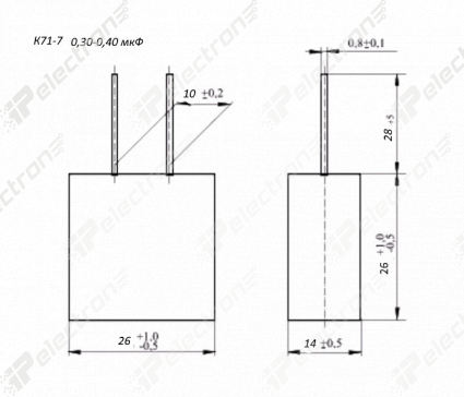 | Наименование | К71-7 0,33мкФ 250В ±1% Конденсатор полистирольный. |