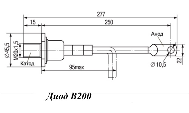 | Наименование | В200-13 200A 1300V Диод силовой, |