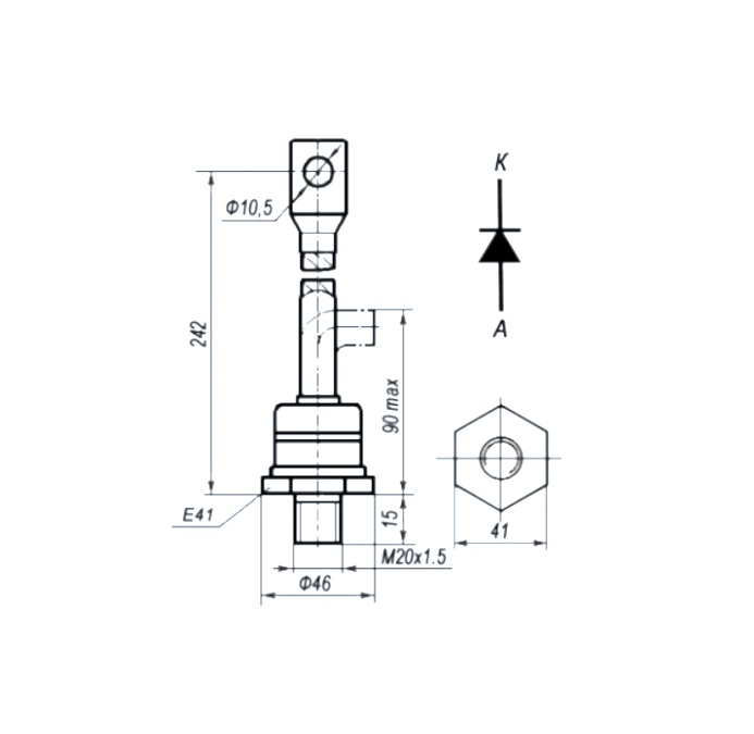 | Наименование | ВЧ2-200-9 200A(Ампер) 900V(Вольт) Диод силовой, ТУ 16-529.917-75 |