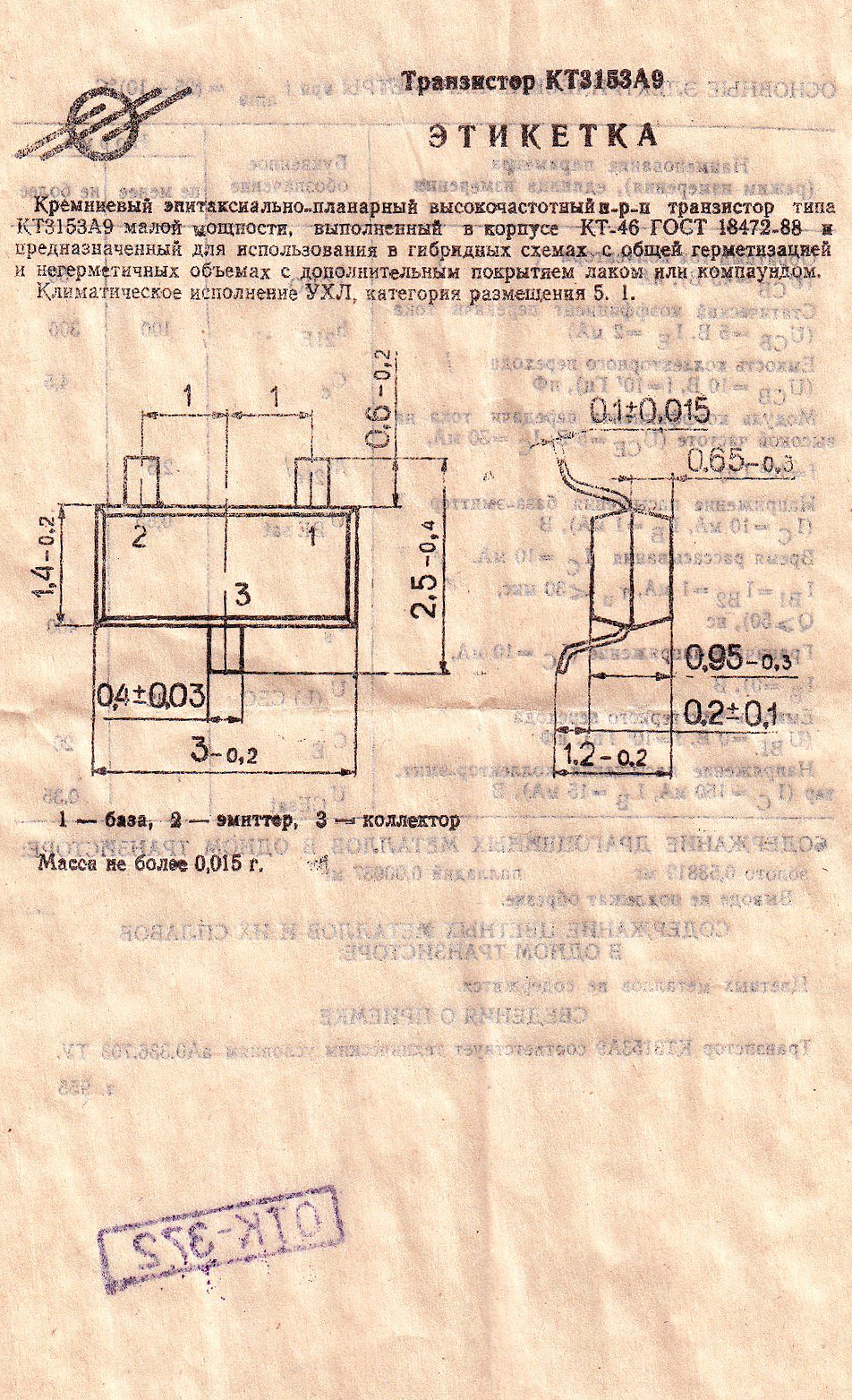 | Наименование | КТ3153А9 SOT23 Транзистор |
