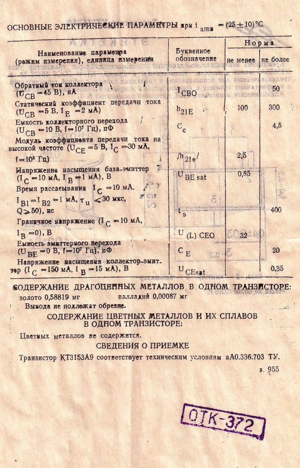 | Макс. допустимый постоянный ток коллектора | 100 mA |