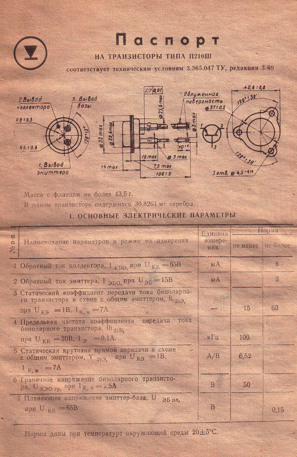 | Наименование | П210Ш Транзистор, 1977г |