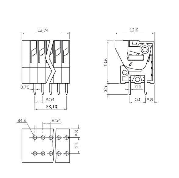 | Наименование | GT141V-2.54-04P-14-00 2A(Ампер) 150V(Вольт) 4 контакта шаг 2,54mm 1 ряд контактов Клеммник самозажимной, на плату, GOLTEN |