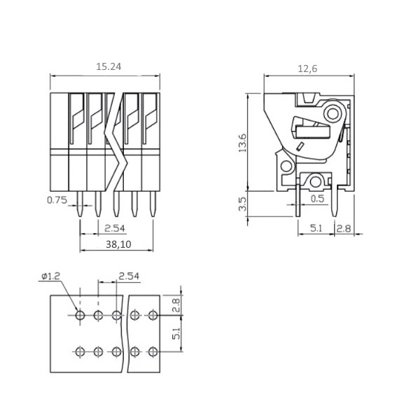 | Наименование | GT141V-2.54-05P-14-00 2A(Ампер) 150V(Вольт) 5 контактов шаг 2,54mm 1 ряд контактов Клеммник самозажимной, на плату, GOLTEN |