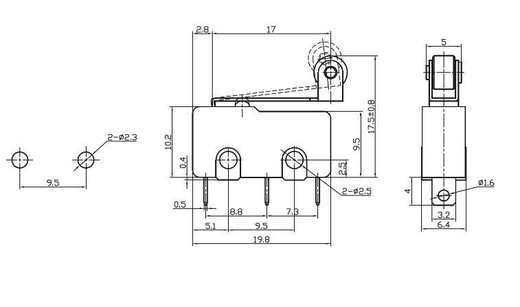 | Установочные размеры | 9,5 mm расстояние между монтажными отверстиями |