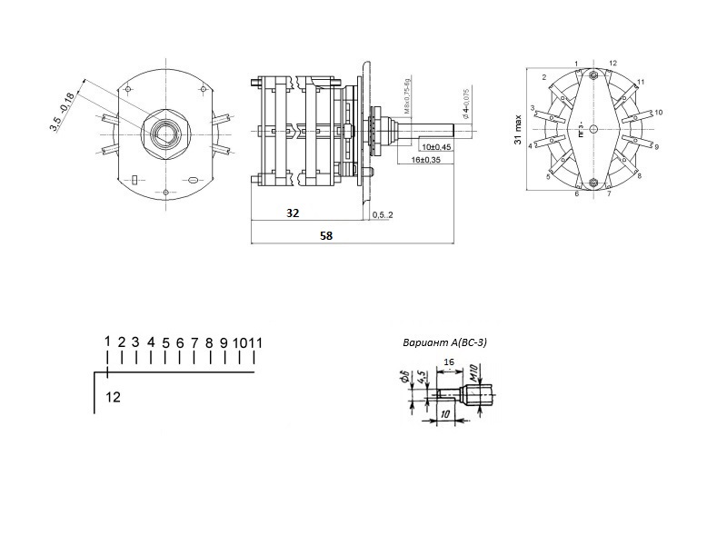 | Функциональный тип | Переключатель галетный |