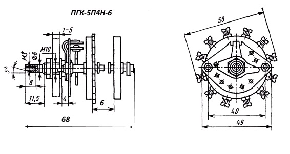 | Наименование | ПГК-5П4Н-6 5 положений 4 направления 3A(Ампер) 350V(Вольт) вал ОС-6 (сплошной с косой лыской) Переключатель галетный.. |