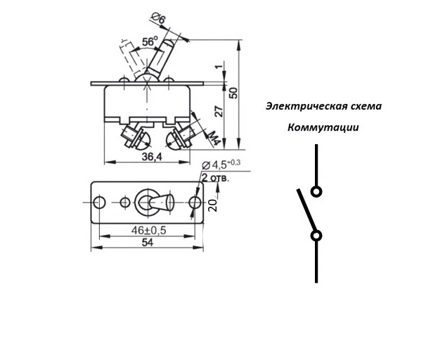 | Наименование | В-45М on-off, 35A(Ампер) 27V(Вольт) Тумблер однополюсный, винт, аналог, RUICHI, |