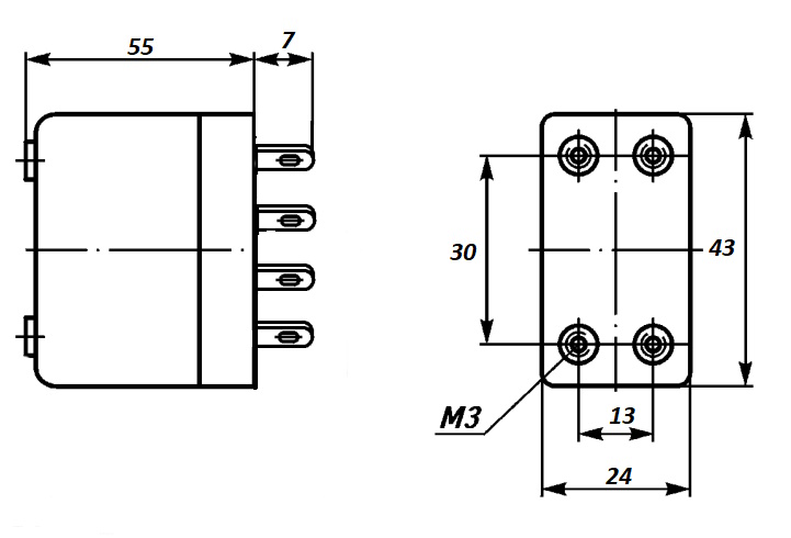 | Ток коммутируемой цепи | 0,05 - 5 A |