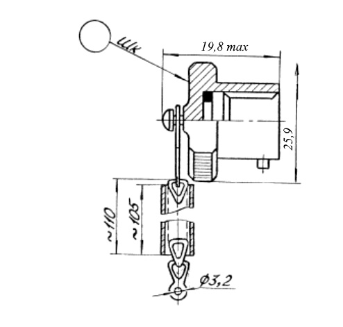 | Транслитерация | Cable plug EK-18 for SNC-23 metal, with chain, NKTsS.434410.112TU |