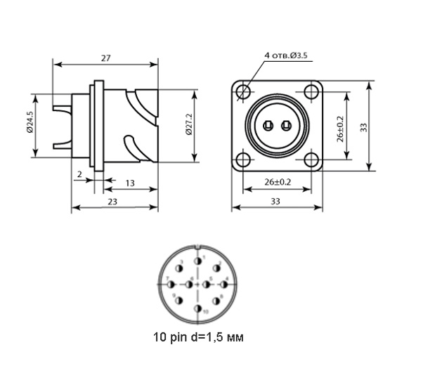 | Диаметр контактов | 10 - Ø 1,5 mm |