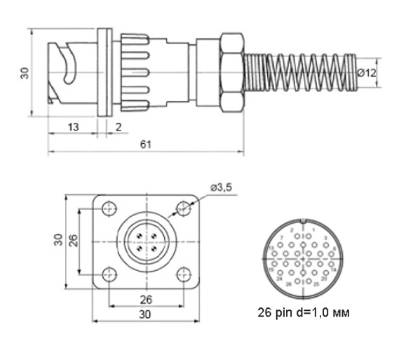 | Сочетание контактов | 26 контактактов Ø 1 mm |