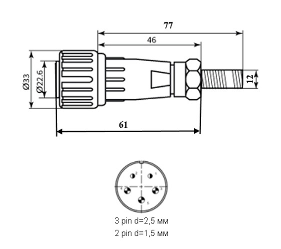 | Сочетание контактов | 2 контакта Ø 1,5 mm; 3 контакта Ø 2,5 mm |