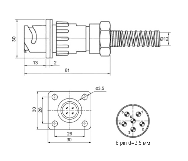 | Сочетание контактов | 6 контактов Ø 2,5 mm |