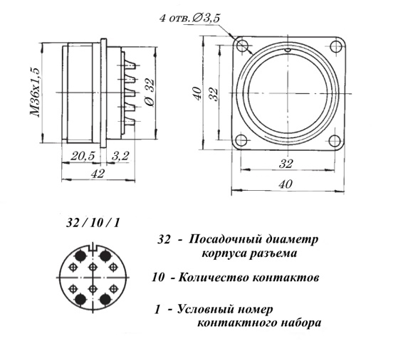 | Диаметр контактов | 6 - Ø 1,5 mm; 4 - Ø 2,5 mm |