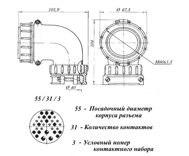 | Наименование | ШР55У31НШ3Н Розетка кабельная, НКЦС.434410.111ТУ |