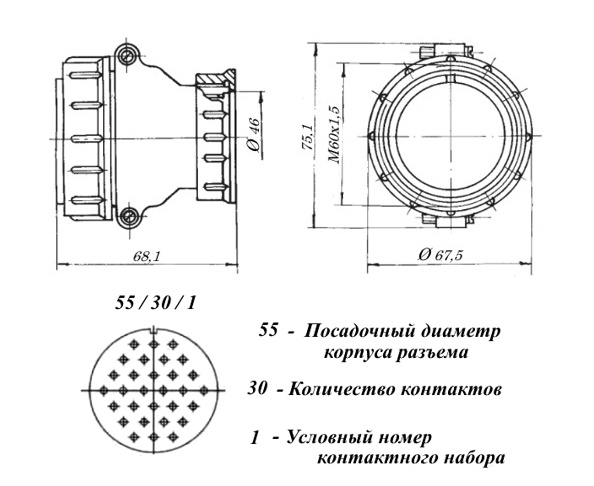 | Наименование | СШР55П30ЭШ1 Розетка кабельная, ГЕ0.364.107 ТУ |