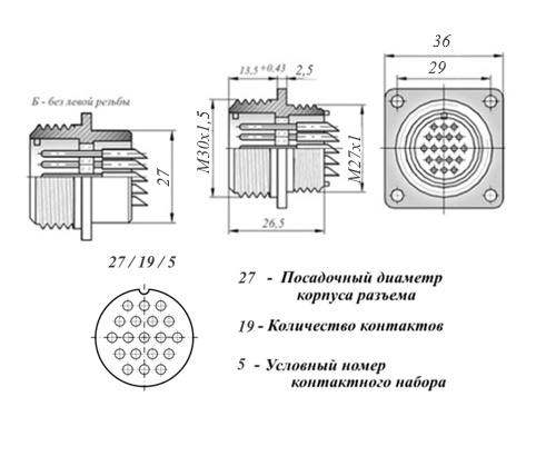 | Наименование | 2РМГД27Б19Ш5Е2Б Вилка блочная, бР0.364.103ТУ, 1992г |