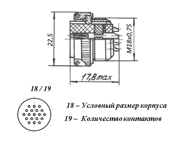 | Диаметр контактов | 19 - Ø 1 mm |