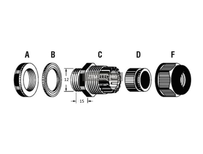 | Наименование | MGB12L-05B 3-5,5 mm Кабельный ввод(гермоввод), сальник черный |
