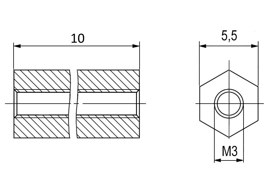 | Наименование | HTP-310B Стойка для печатной платы шестигранная, нейлон, внутр. резьба М3х0,5, длина L 10mm, 2 отвер. под винт |