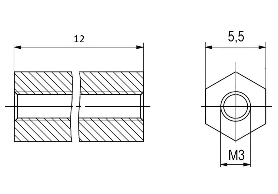 | Наименование | HTP-312 Стойка для печатной платы шестигранная, нейлон, внутр. резьба М3х0,5, длина L 12mm, 2 отвер. под винт, Ruichi. |