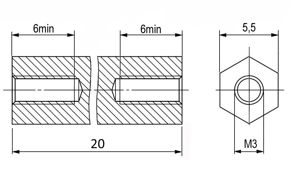 | Наименование | HTP-320B Стойка для печатной платы шестигранная, нейлон, внутр. резьба М3х0,5, длина L 20mm, 2 отвер. под винт |