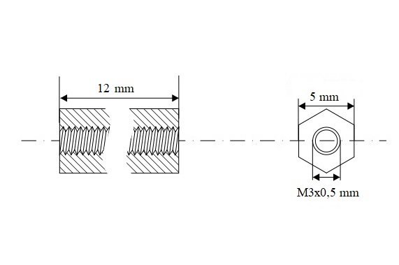 | Наименование | PCNCHSS-12 Стойка для печатной платы шестигранная, латунь, внутр. резьба М3х0,5, длина L12 mm, 2 отв. под винт |