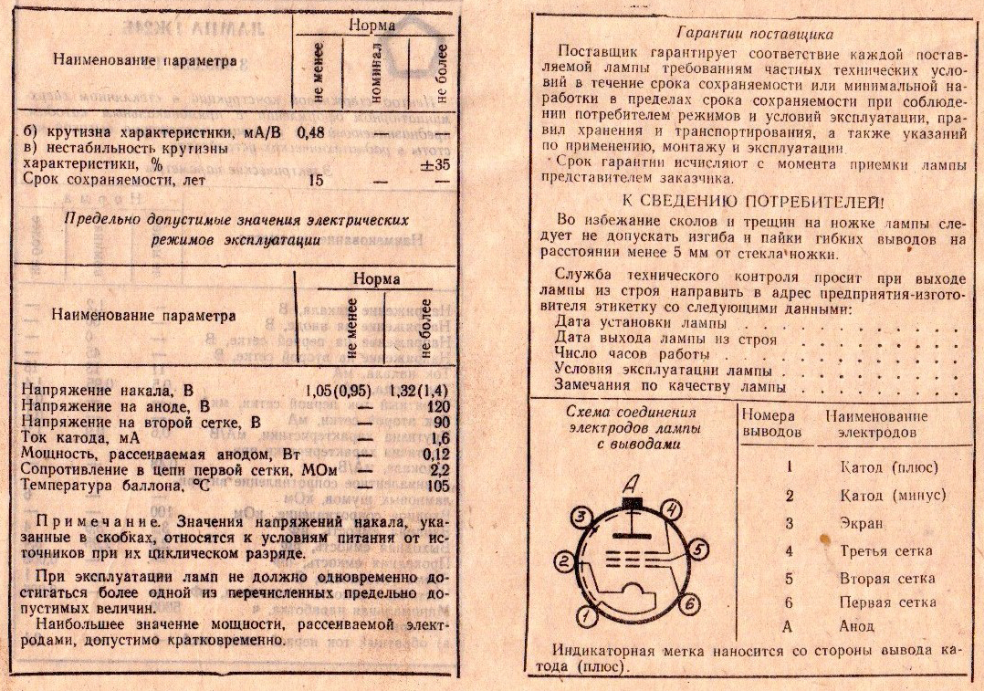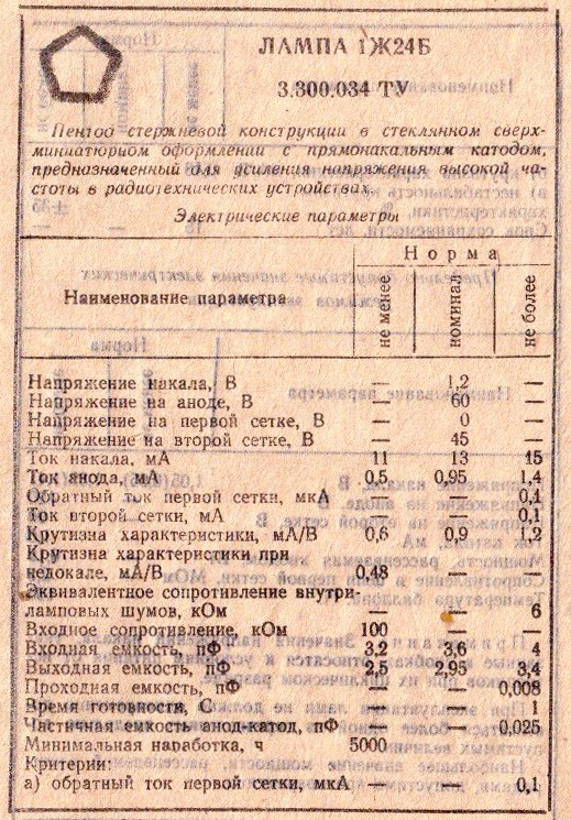 | Крутизна характеристики | 0,9±0,3 mA/V |