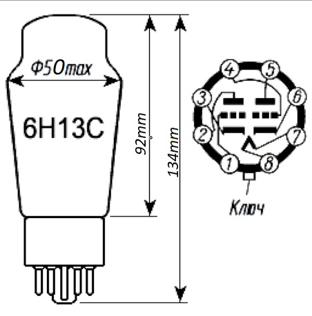 | Цоколь | октальный с ключом. Штырьков 8 |