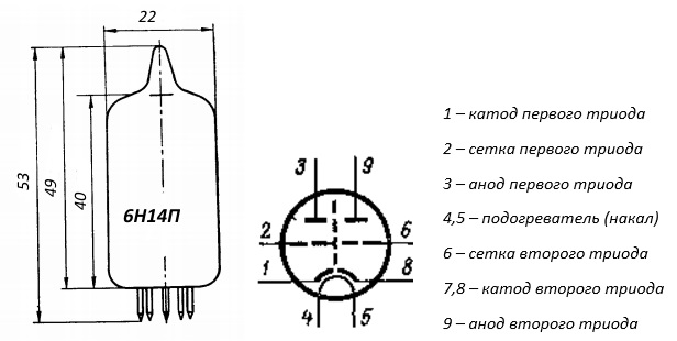 | Наименование | 6Н14П Двойной триод, ОДО 330.012 ТУ |