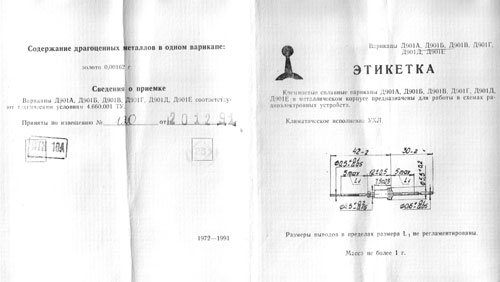 | Наименование | Д901Б Варикап, 1991г |
