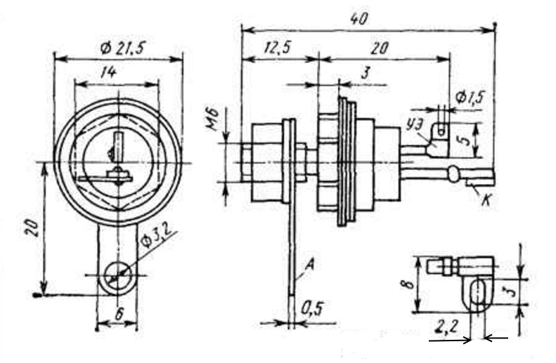 | Функциональный тип | тиристоры маломощные отечественные |