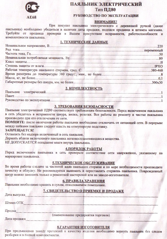 | Транслитерация | PD80 220 V 80 W Soldering Iron |
