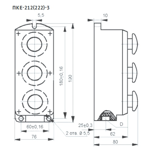 | Наименование | ПКЕ212-3У3 Пост управления кнопочный |