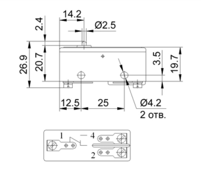 | Электрическая схема контактов микропереключателей | 1 размык. |