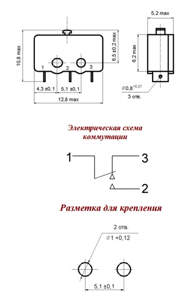 | Электрическая схема контактов микропереключателей | 1 перекл. |