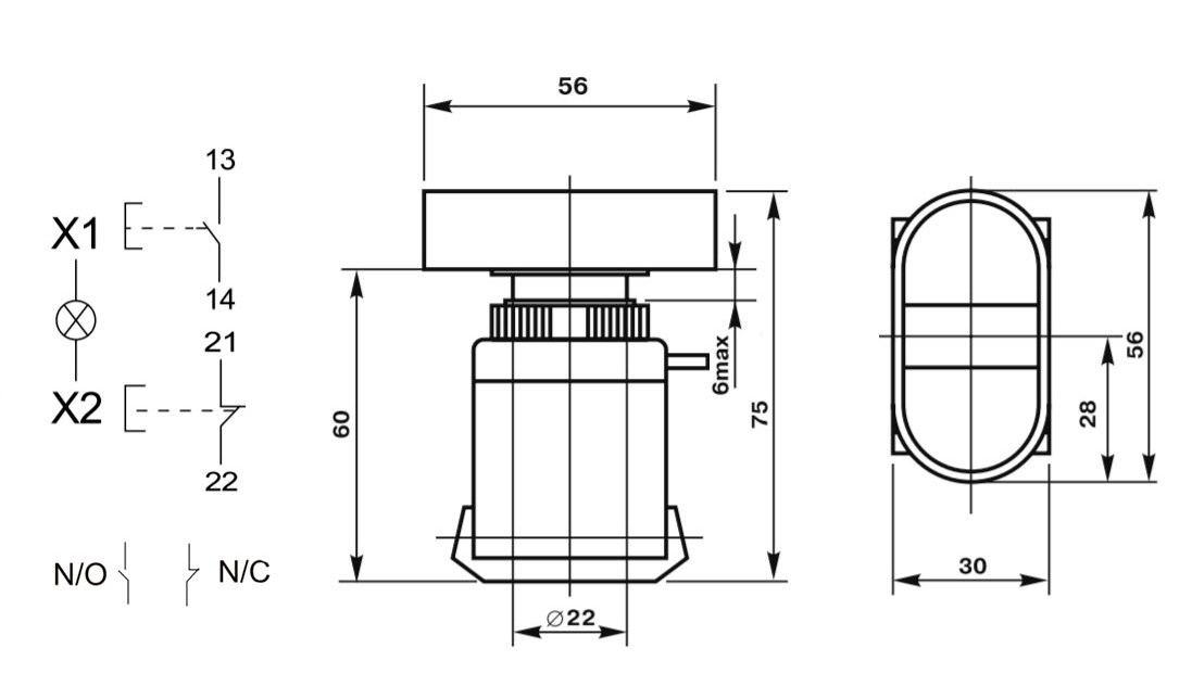 Установочные размеры 22 mm