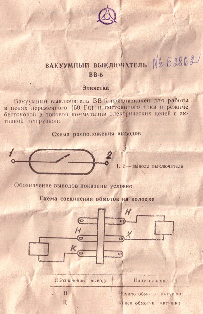 | Наименование | ВВ-5 Выключатель вакуумный, "1" |