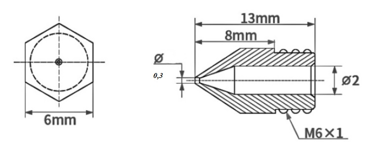 | Наименование | B-MK8-1.75-0.3 Сопло для 3d принтера, RUICHI |