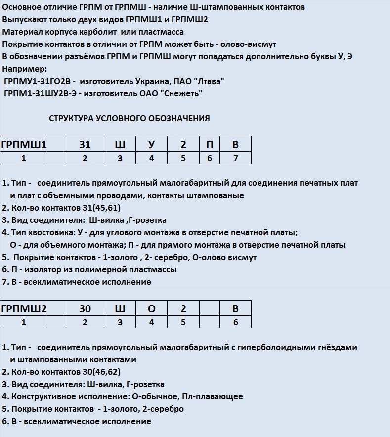 | Серия прямоугольных соединителей | ГРПМШ1 |