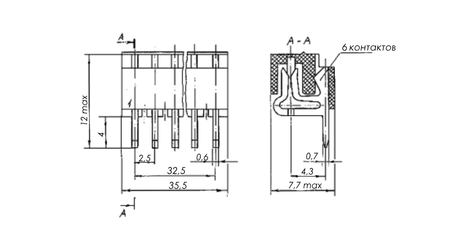 | Диаметр контактов | 0,6 mm |