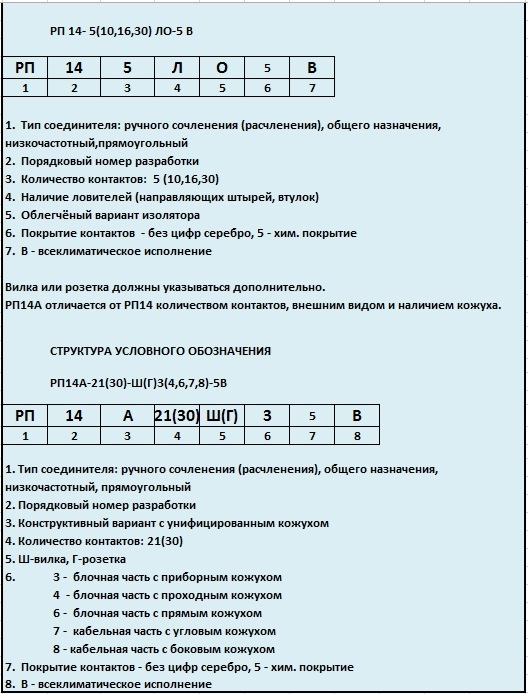 | Серия прямоугольных соединителей | РП14 |