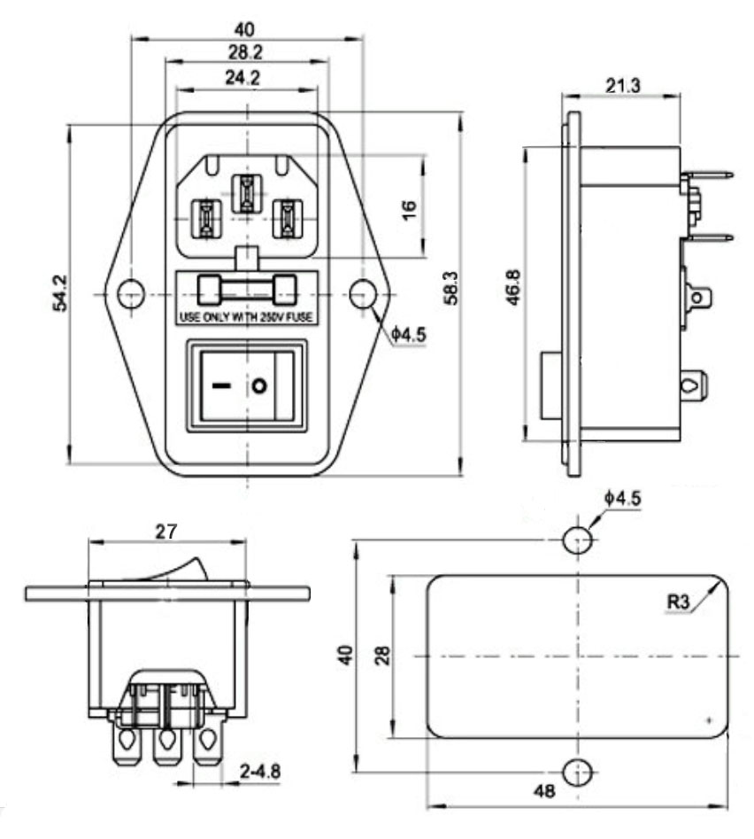 | Размер монтажного отверстия | 28х48 mm |