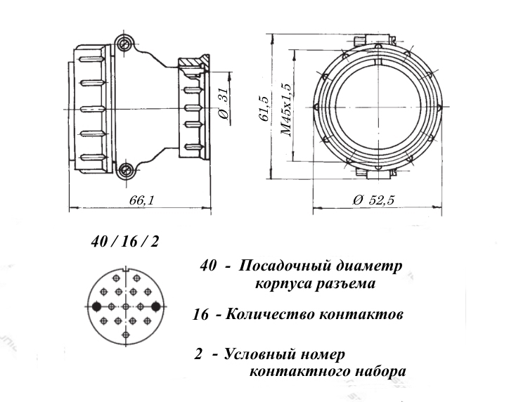 | Наименование | ШР40П16ЭГ2 Вилка кабельная, НКЦС.434410.111ТУ, |