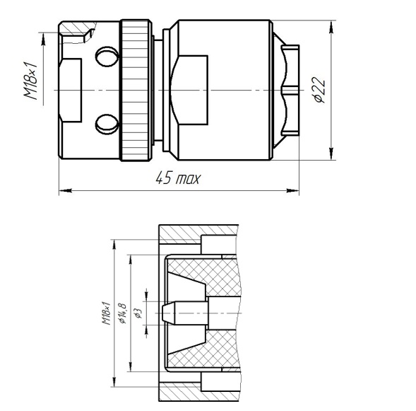 | Размер монтажного отверстия | М18х1 |