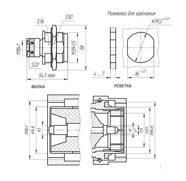 | Размер монтажного отверстия | М18х1 / М39х1,5 |